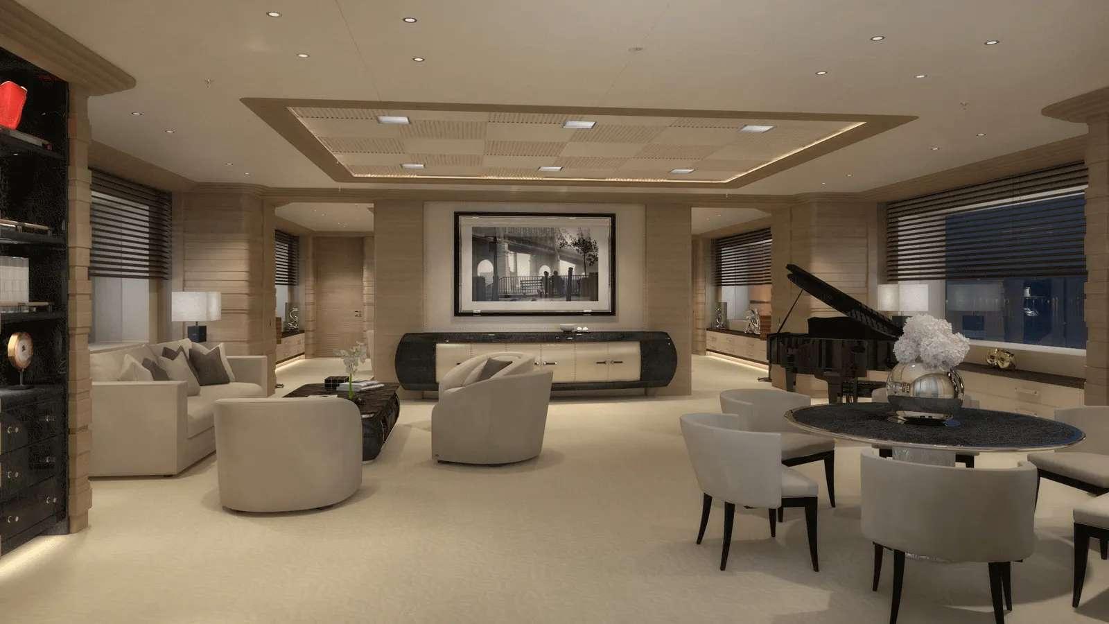 Максимальная скорость 16,5 узлов и дальность хода 8000 морских миль на 10 узлах, - это настоящая океанская яхта, с которой ее владелец откроет новую главу в мире суперяхт. 6 палуб, 12 кают, 22 каюты для crew, размещение до 37 членов экипажа.