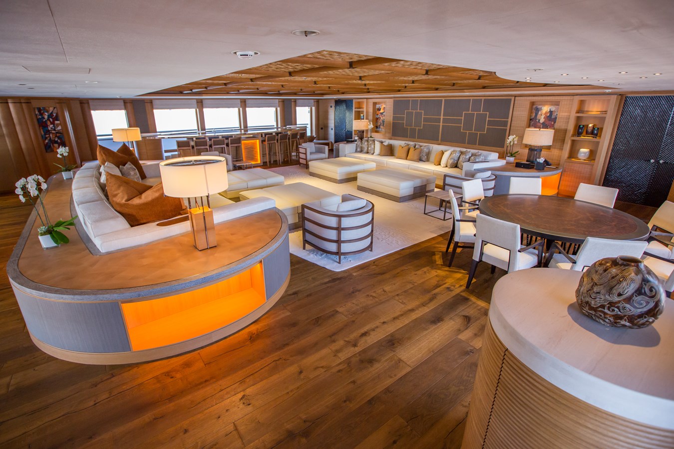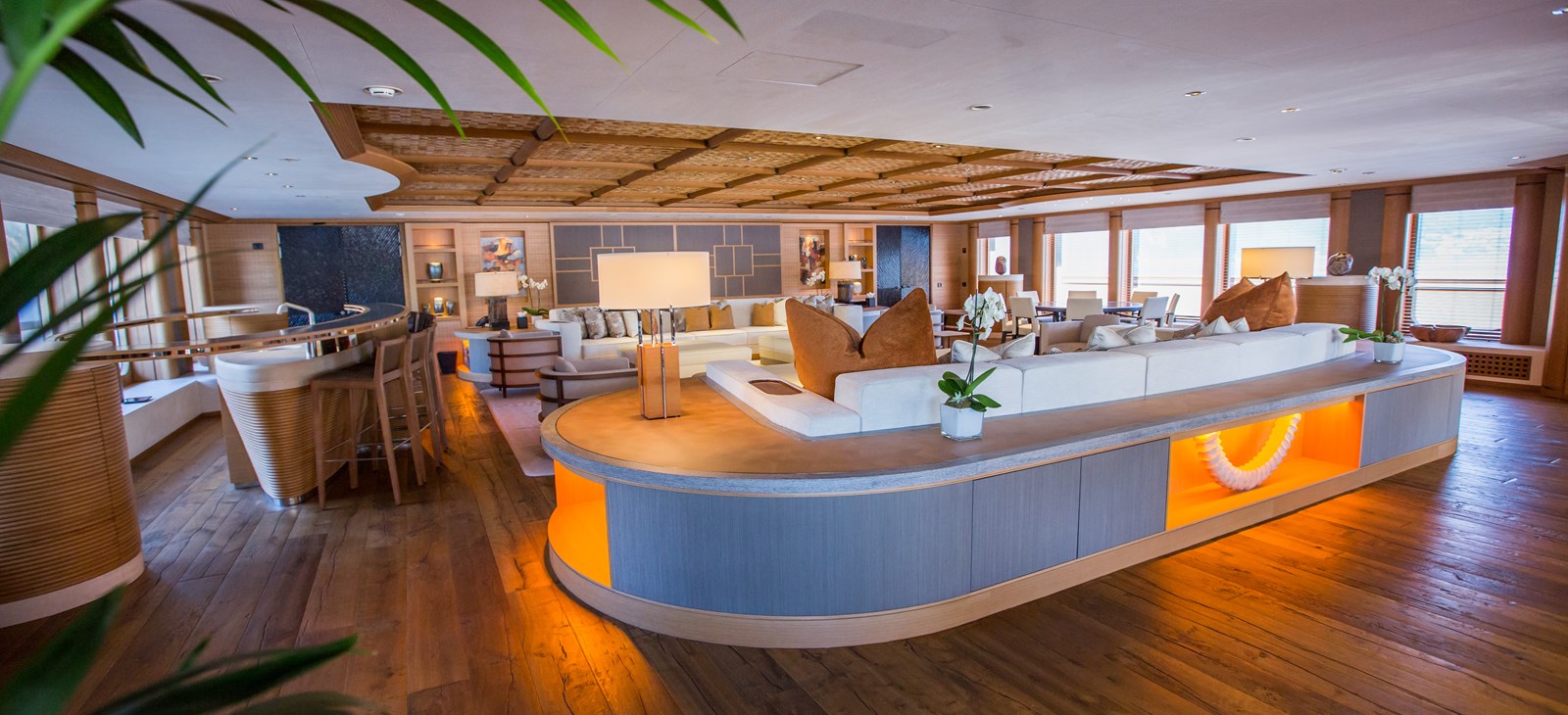 Внутри находится панорамный скай-лаунж с огромным баром, просторным лаунжем и большим экраном. В помещении установлены световые и звуковые системы, как в ночном клубе, а скатывающийся ковер открывает вид на освещенный танцпол. В носовой части расположен многоуровневый кинотеатр с аудиовизуальной системой мирового класса.