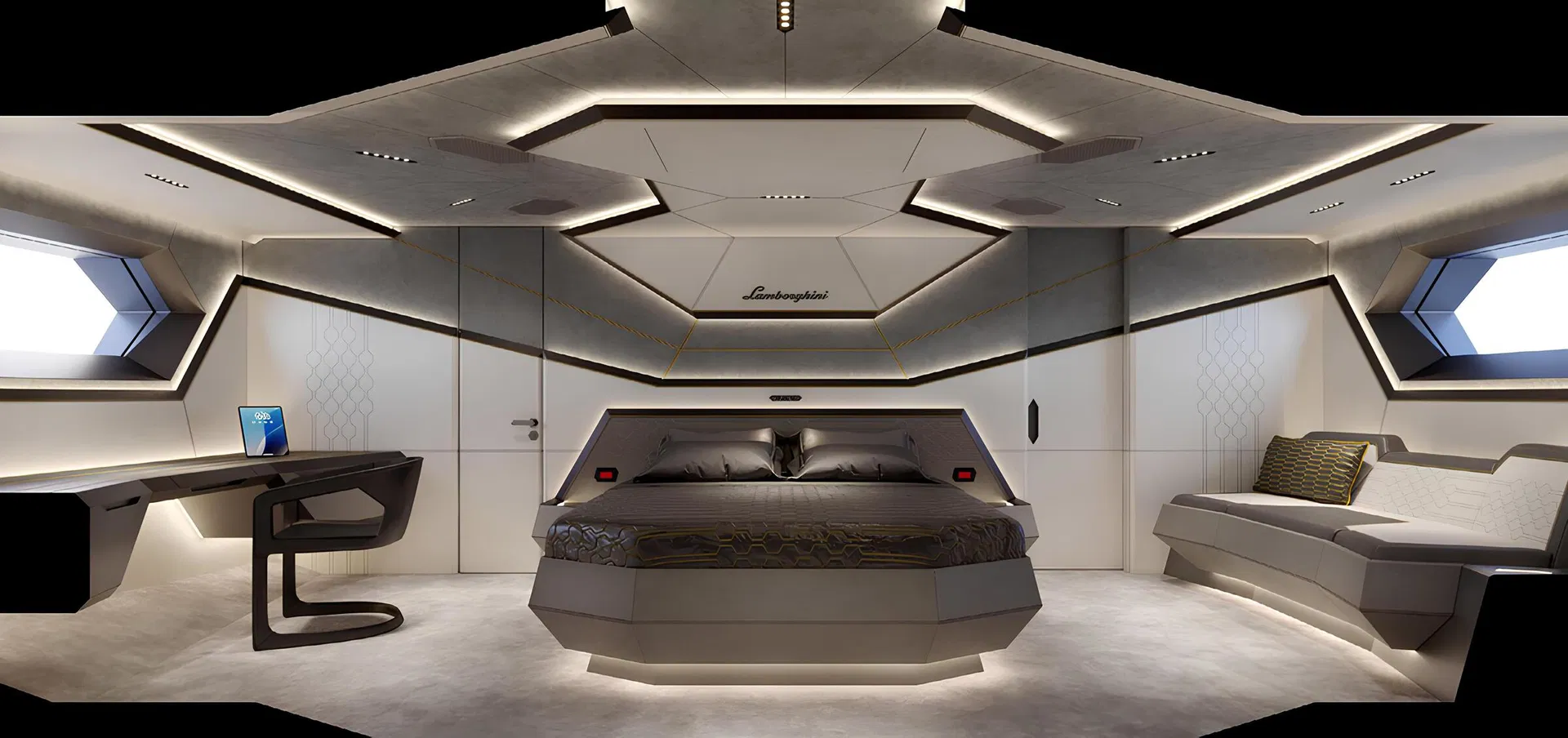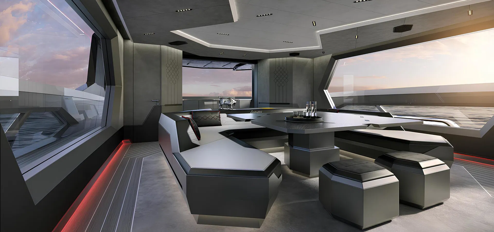 Карбон, использованный в качестве конструкционного материала, типичен для спорткаров Lamborghini и делает яхту ультра-легкой.