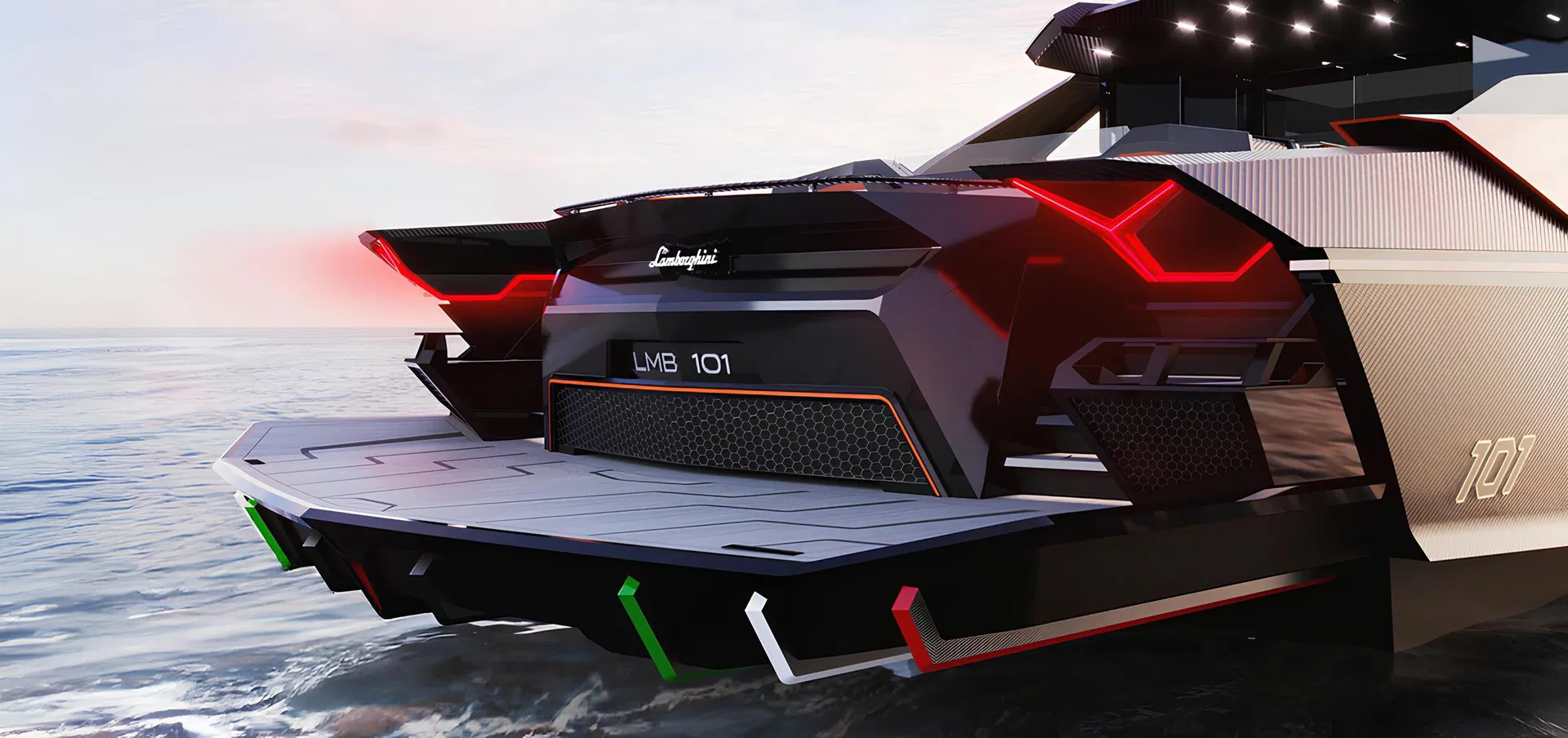 Созданная совместно брендом Tecnomar, входящим в состав The Italian Sea Group, и Centro Stile компании Automobili Lamborghini, новая модель 101 сочетает в себе эстетику гиперкара, трёхмоторную динамику, развивающую скорость 45 узлов, и четырёхкаютный интерьер на девять гостей, превращая оригинальный «плавучий суперкар» в полноценную суперяхту, в которой каждый дюйм ощущается как Lamborghini.
