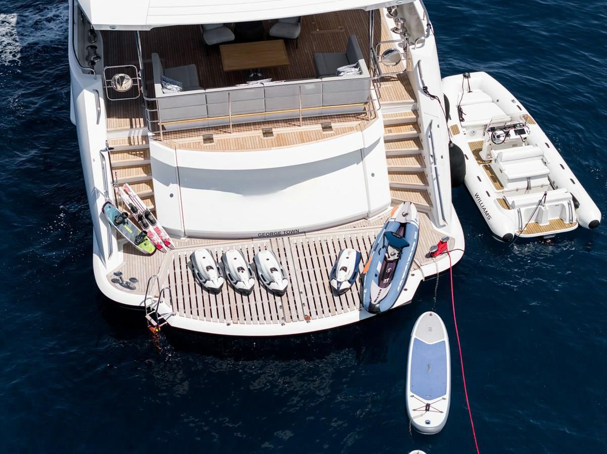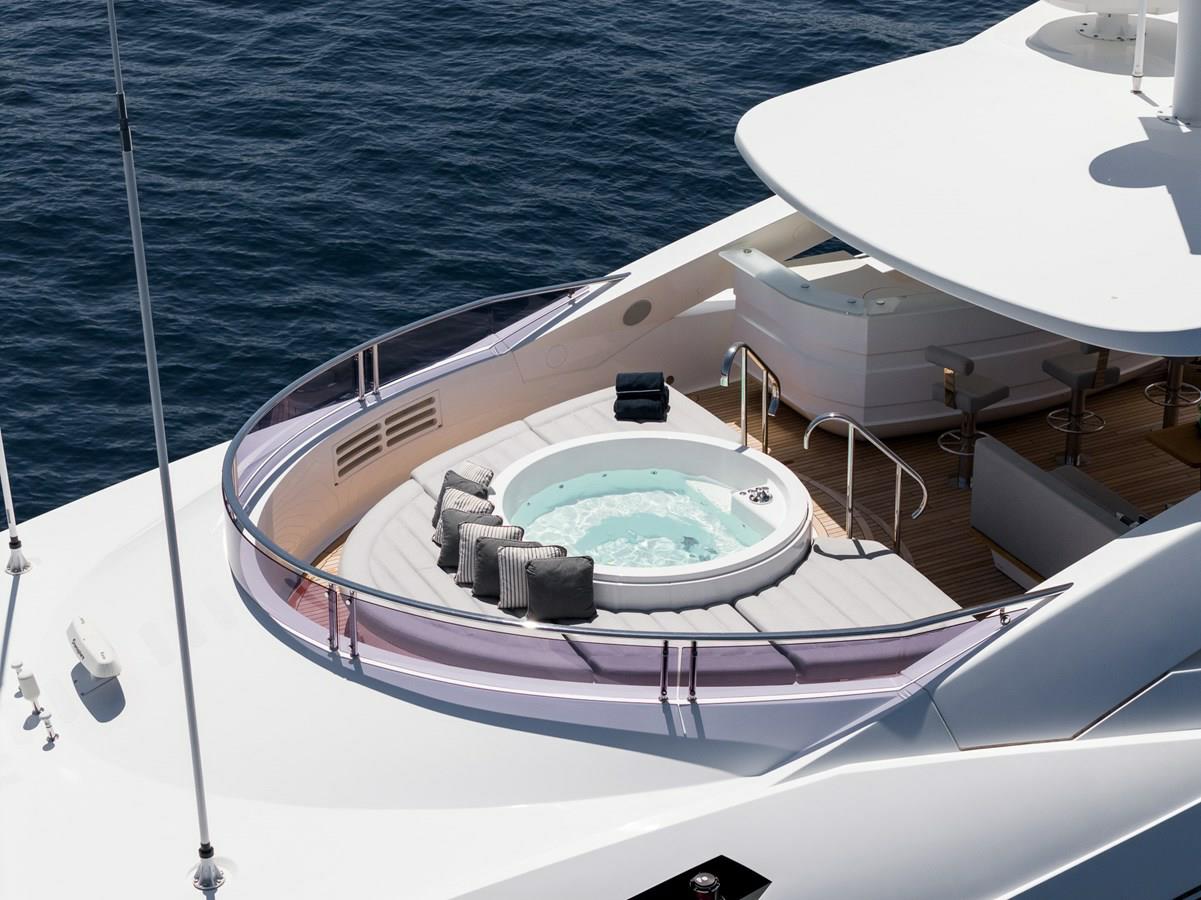 На яхте - балкон, сдвигающаяся крыша, хардоп, джакузи, солнечная палуба, бич-клуб и многое другое.
